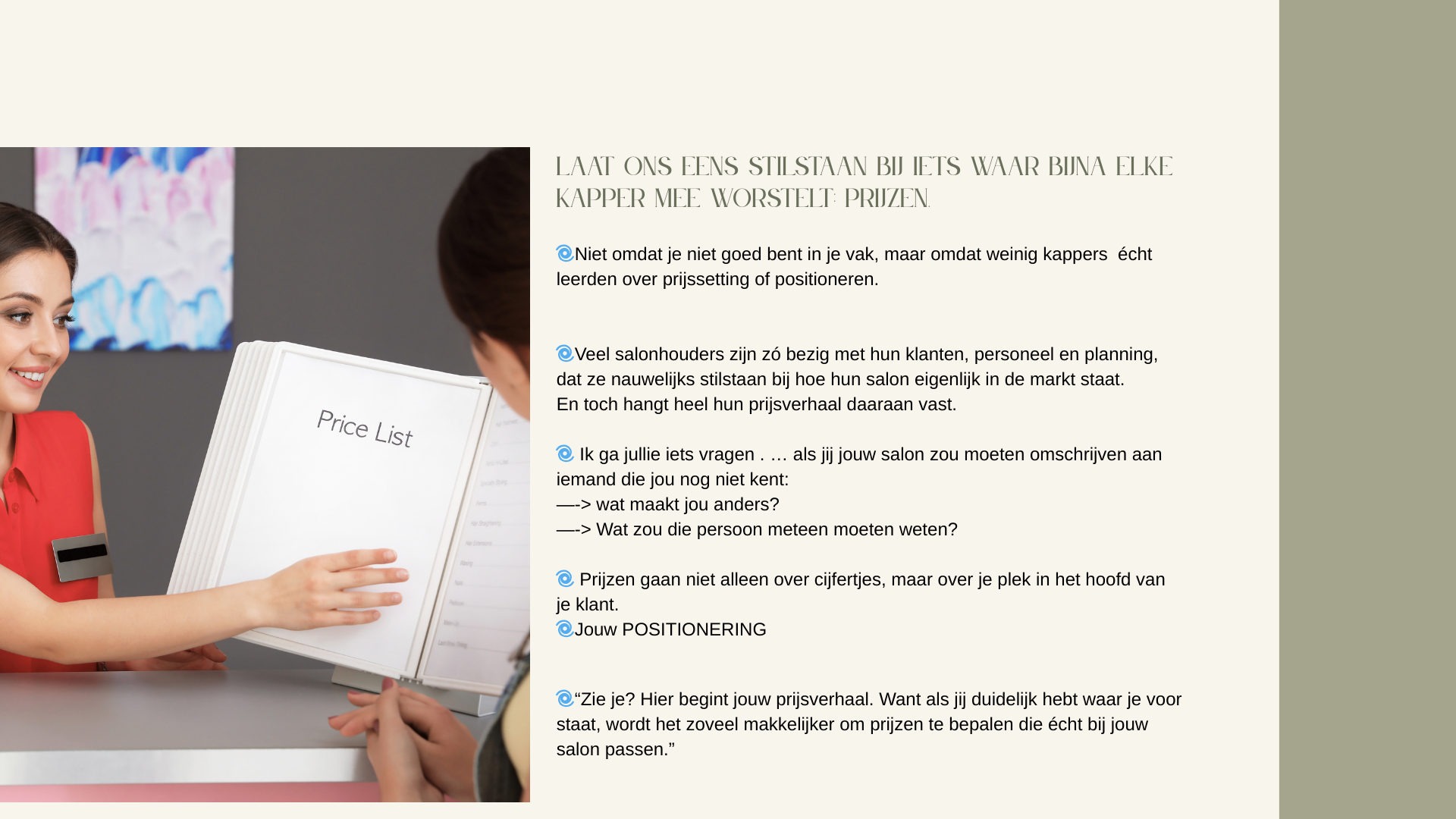 Daarom werk ik aan iets nieuws voor kappers die klaar zijn om professioneel te prijzen.”