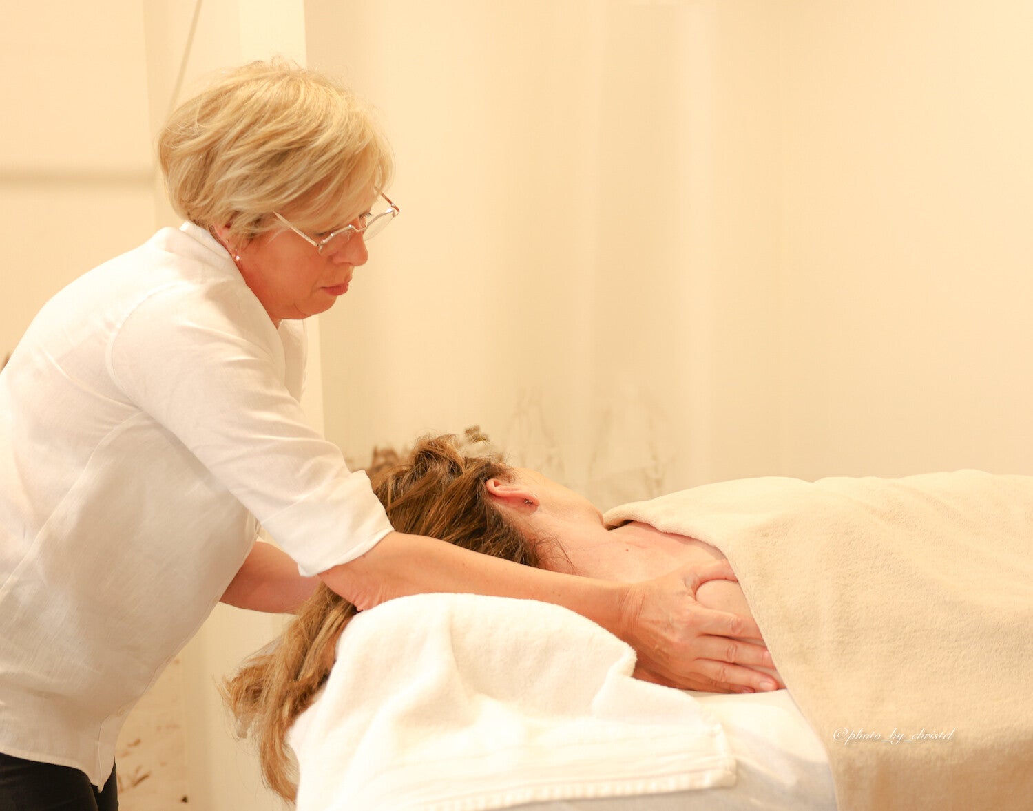Hoofd-, nek- en rugmassages. Rust. Aanraking. Tijd nemen.